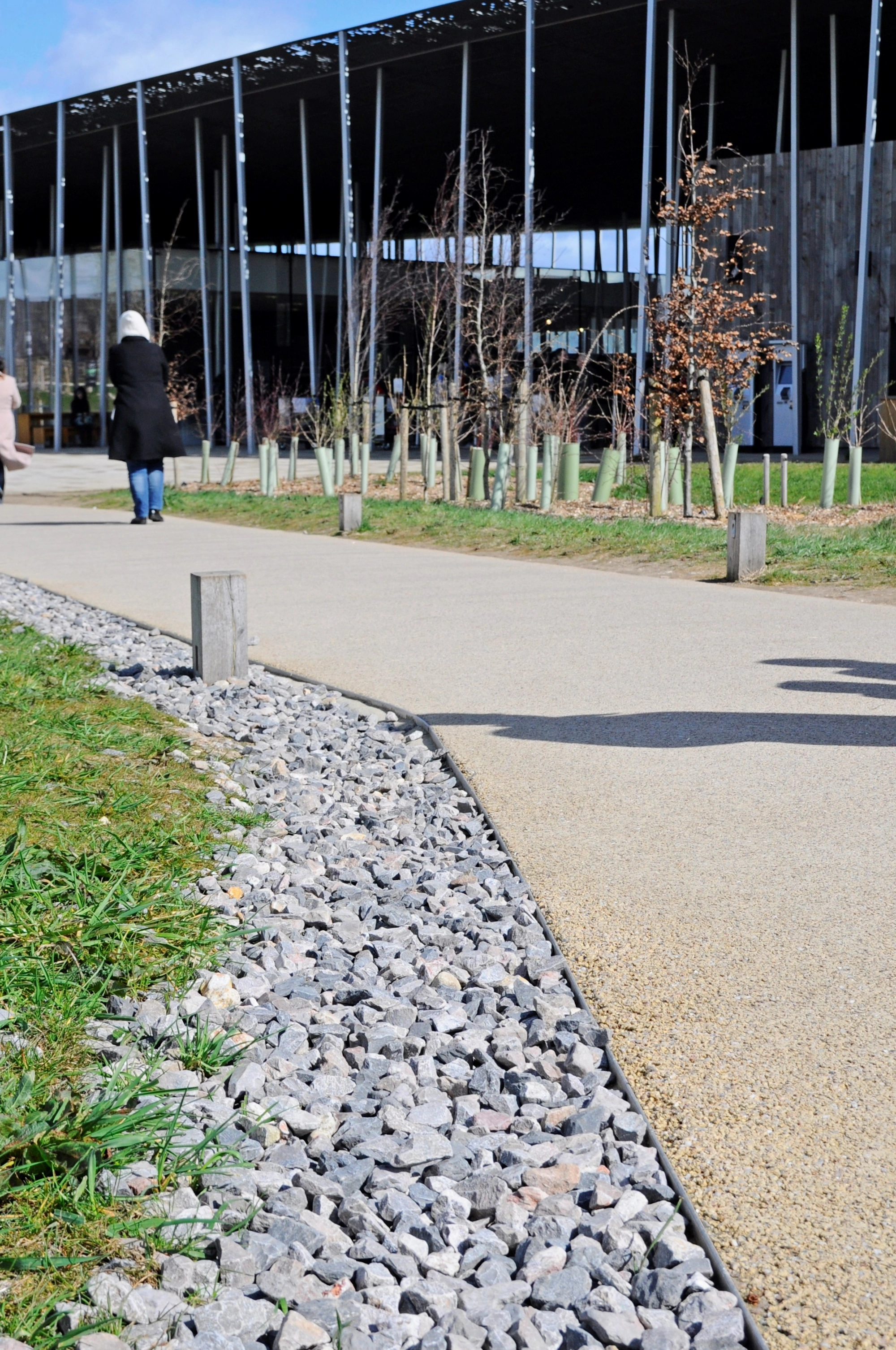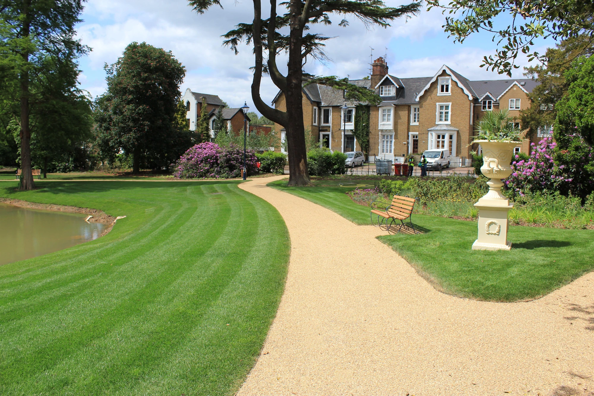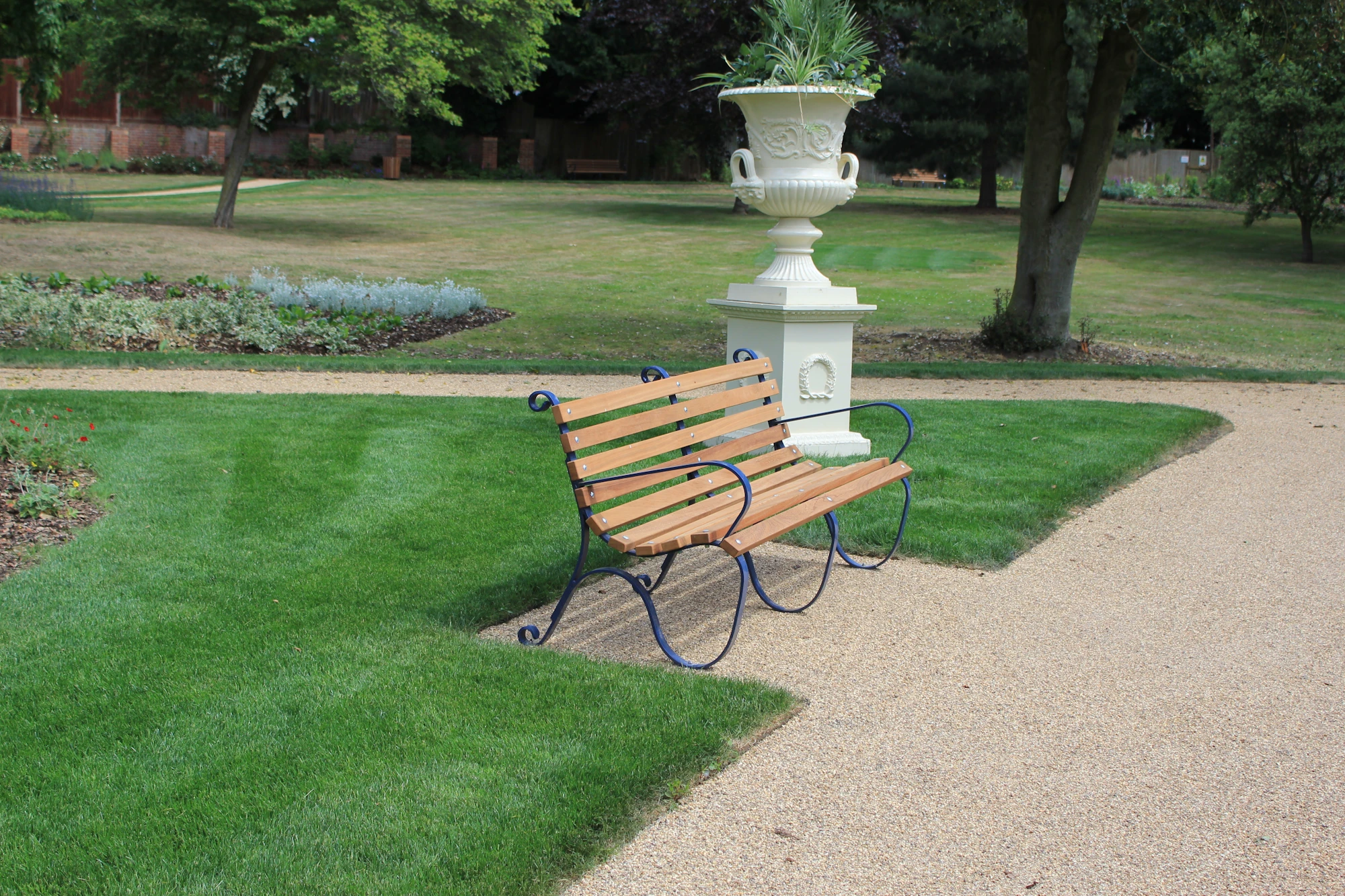 The Borderline steel edging system by Kinley was used successfully to achieve impressive curves to the pathways of this grade 2 listed recreation ground. Tight radii were achieved by hand using the 3mm thick edging system. This product is the ultimate solution for both hard and soft landscape applications where curved designs are looking to be achieved.The benefits and simplicity of the unique Borderline overlapping joining and fixing system have drawn plaudits from many landscape professionals. It provides very strong and almost invisible connections between sections. It is also much quicker and easier than rival products to install, in rigid or curved boundary lines.