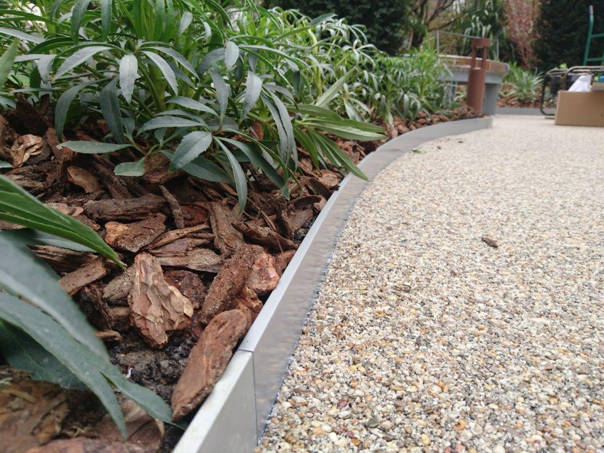 The edging provided clean lines between the new permeable clay pavers and planting areas with a clean transition from hard to soft landscaping.
