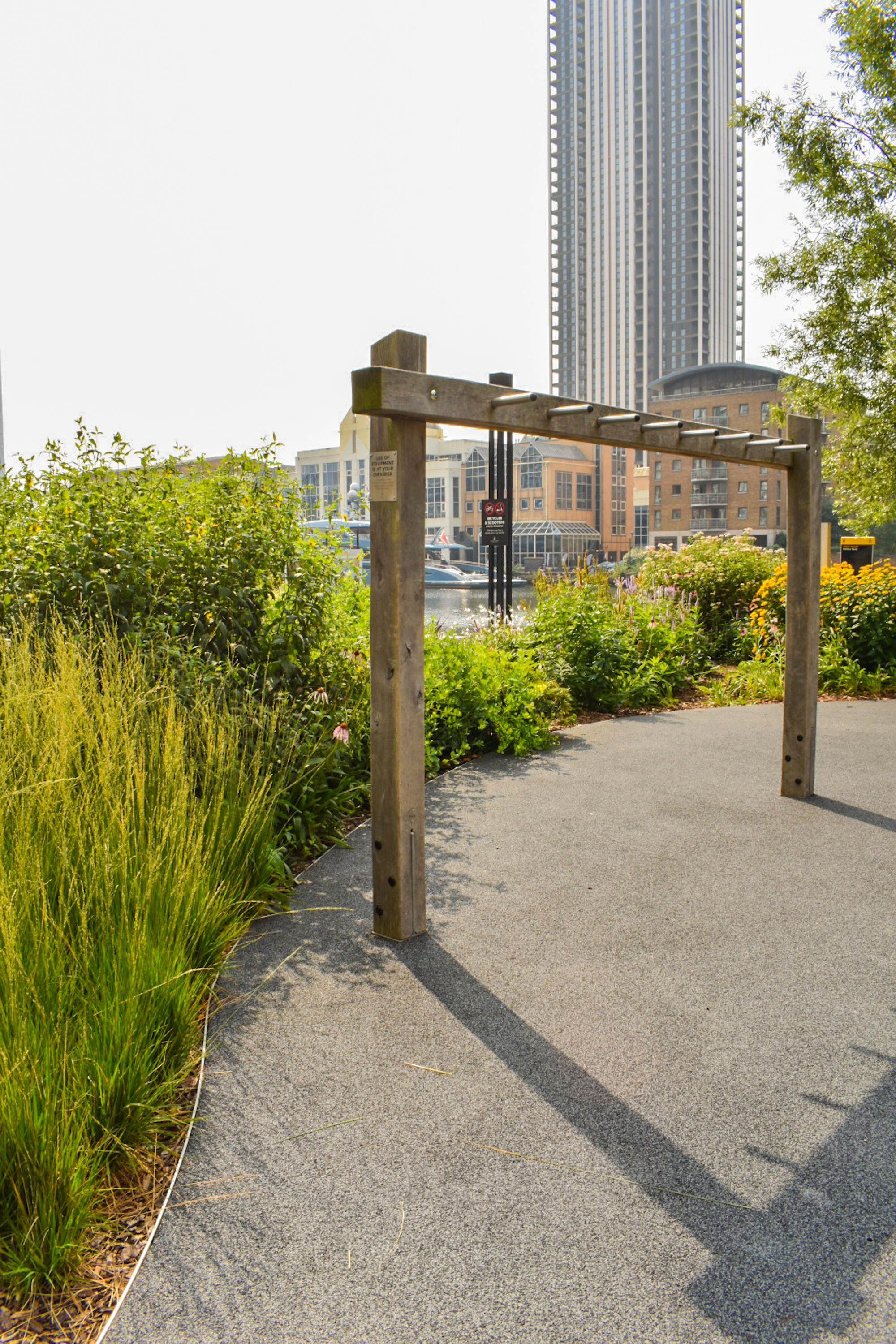 AluExcel aluminium landscape edging was strategically used to create clean, defined boundaries between soft and hard landscaping including the pathways, contributing to the overall visual elegance of the gardens. The introduction of durable and low-maintenance metal edging not only elevated the appearance of the park but also played a key role in preserving the structure and health of the garden's various plant beds. With its sleek, contemporary design, the metal edging harmonized with the modern aesthetic of Canary Wharf, offering a seamless blend between the natural and urban environment.